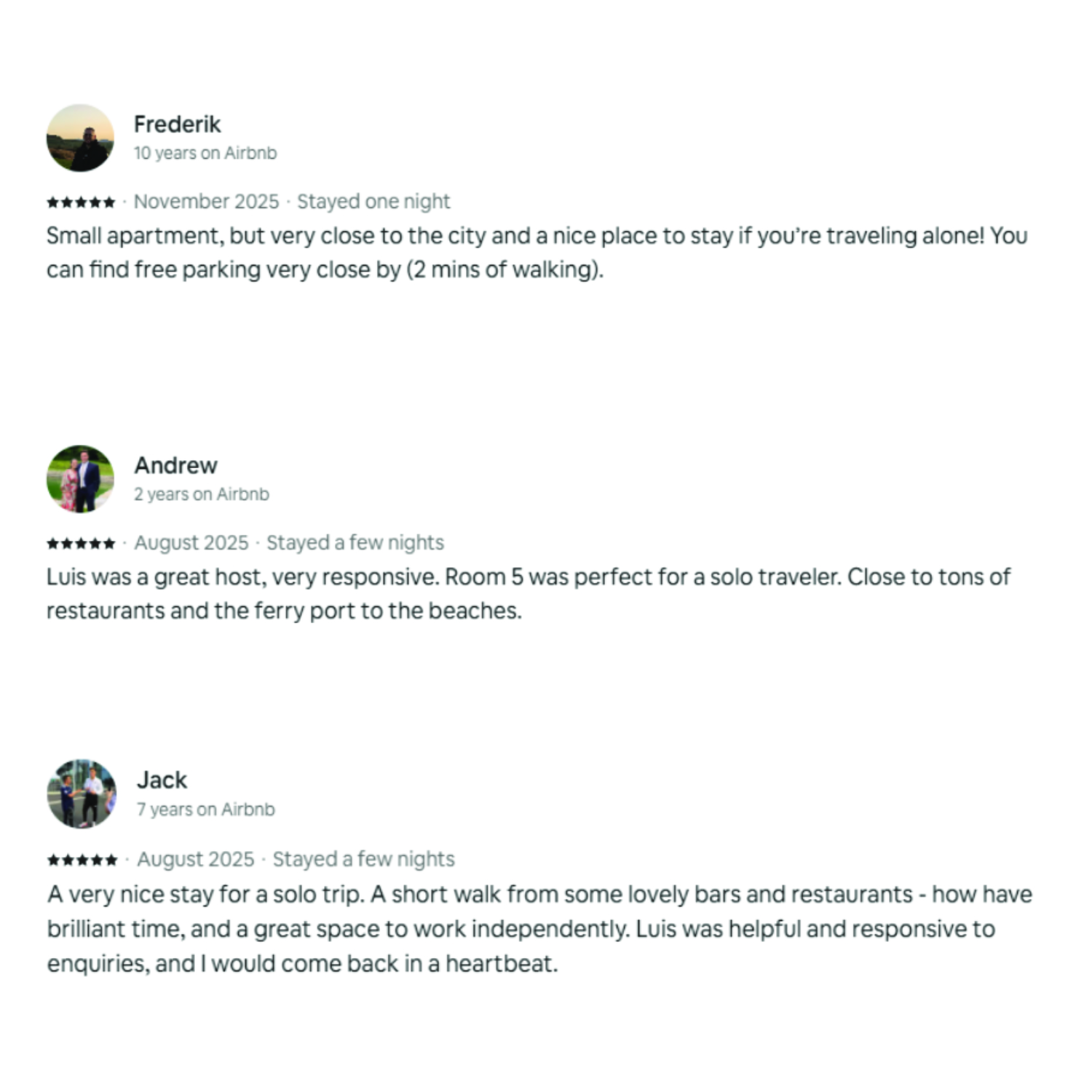 Your room includes: 🛌 - Double bed - Air conditioning - Smart TV w/streaming services - Fast Wi-Fi - Towels & sheets - Hairdryer - Extra pillows and blankets - Complimentary water, coffee, and tea - Bathroom is equipped with shower gel and shampoo You’ll also enjoy: 😊 - A Luggage Locker, so you can explore the city before check-in or after check-out - A peaceful terrace for relaxing or enjoying sunny afternoons - A beautiful patio for outdoor meals - Fully equipped kitchen - Free laundry facilities